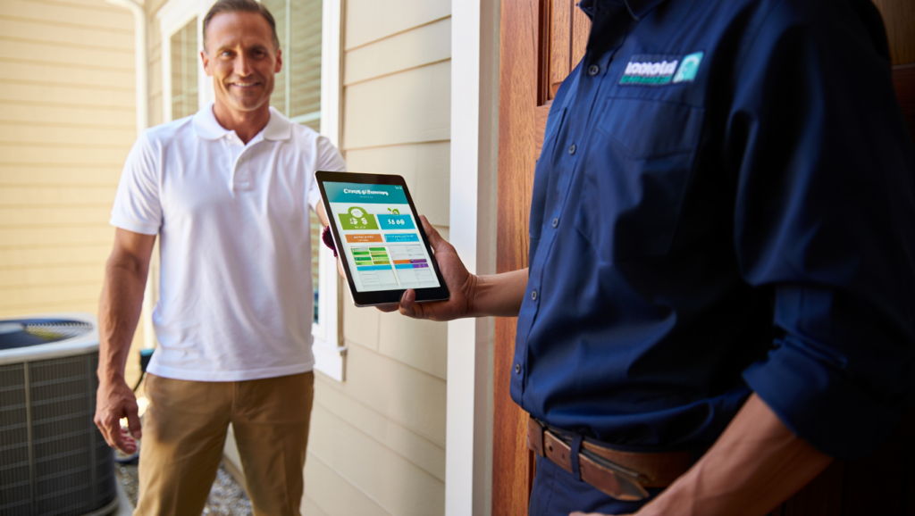 Tiered option presentation (Good/Better/Best). The most profitable HVAC businesses don’t just show one price — they show three options at different price points for the same repair. A basic fix, a mid-tier option with a warranty upgrade, and a premium option with a service agreement. This isn’t upselling; it’s giving customers a choice. Platforms that support this format see average ticket increases of 20–35% compared to single-option quoting. READ: service industry average ticket data → Successware industry benchmarks